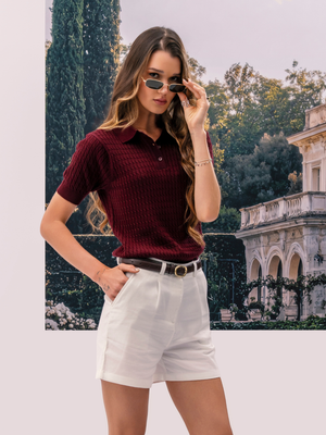 DEEDAT Women's Slim Fit Polo Shirt – Wine