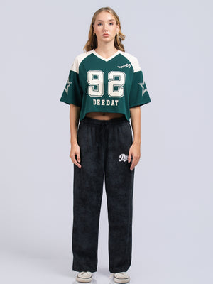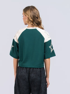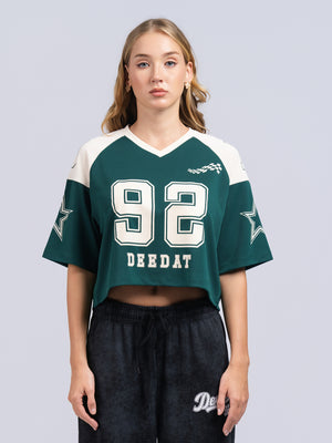 DEEDAT Women's V Neck Crop Oversized Tees - Green